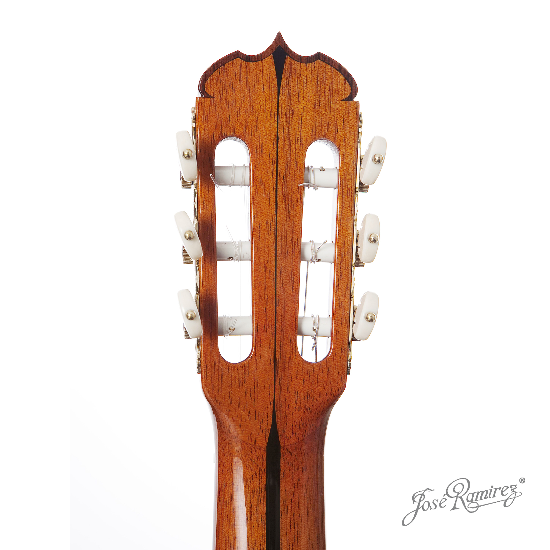 Speciali meccaniche di altissima precisione, costruite in bronzo e avorio sintetico, incise a mano e con design unico e diverso per ogni chitarra. Intarsio in bosso sulla sommità della paletta. Estremità del ponte cesellata, speciale mosaico sulla buca e dettagli costruttivi di altissima maestria.